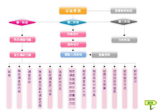 學生以(yi)教師設置(zhi)的(de)(de)實(shi)驗要(yao)求為目標,以(yi)市場調(diao)查(cha)公司總經理(li)的(de)(de)身份負責市場調(diao)查(cha)的(de)(de)整個過程,根(gen)據系(xi)統(tong)的(de)(de)操作向導按步(bu)驟、階段性(xing)完(wan)成(cheng)實(shi)驗任(ren)務。確(que)定調(diao)研課(ke)題,設計調(diao)研方(fang)案、調(diao)研問卷、抽樣方(fang)案,培訓調(diao)查(cha)人員,搜集并分析資料。
