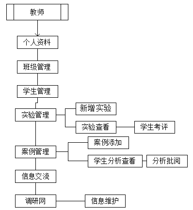 教師端系統(tong)由班級(ji)管(guan)(guan)理、學生管(guan)(guan)理、實(shi)驗管(guan)(guan)理、案例管(guan)(guan)理、調研網管(guan)(guan)理、信息(xi)交(jiao)流、信息(xi)提示(shi)、郵(you)件管(guan)(guan)理、在線作業、教師信息(xi)十個功能模塊組成(cheng)。